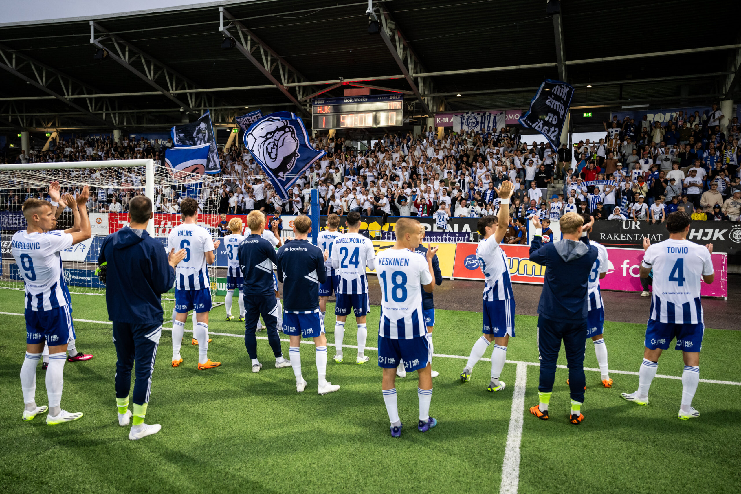 HJK:n kokoonpano: Jesse Öst – Joona Toivio, Miro Tenho, Jukka Raitala – Kevin Kouassivi-Benissan, Lucas Lingman, Georgios Kanellopoulos (70’ Perparim Hetemaj), Pyry Soiri – Atom (79’ Aapo Halme), Bojan Radulovic, Topi Keskinen (79’ Anthony Olusanya)