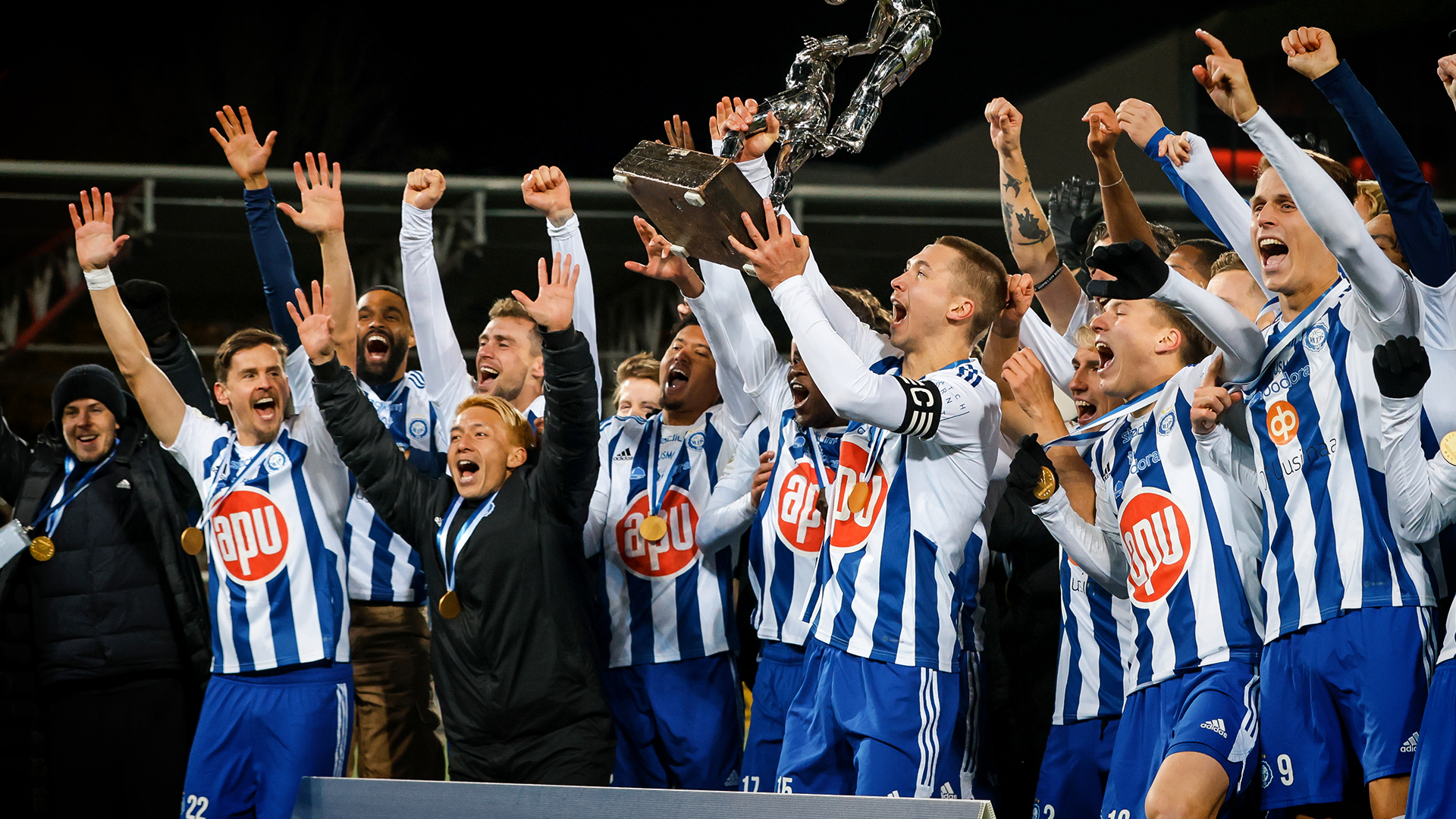 HJK juhli lauantaina neljättä perättäistä ja historiansa 33. Suomen mestaruuttaan, kun kova kamppailu Kuopion Palloseuraa päättyi kuopiolaisten 2–1-vierasvoittoon. Joukkueet päätyivät 27 ottelukierroksen jälkeen tasapisteisiin, mutta Klubi vei mestaruuspokaalin itselleen paremman maalieronsa ansiosta.