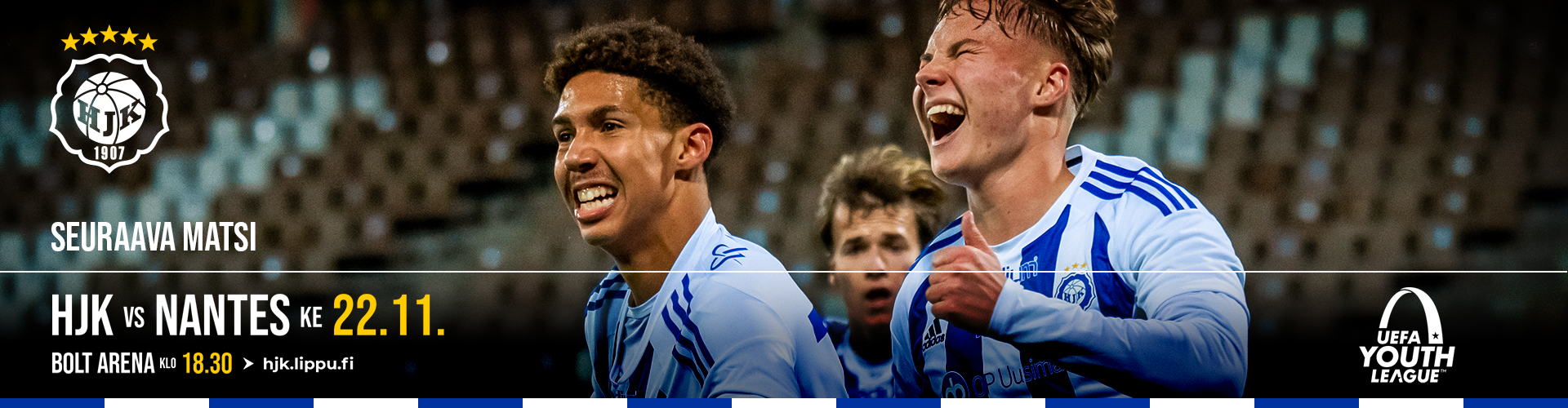 Youth Leaguen ratkaisupeli Nantesia vastaan pelataan Bolt Arenalla ensi keskiviikkona 22. marraskuuta klo 18.30.